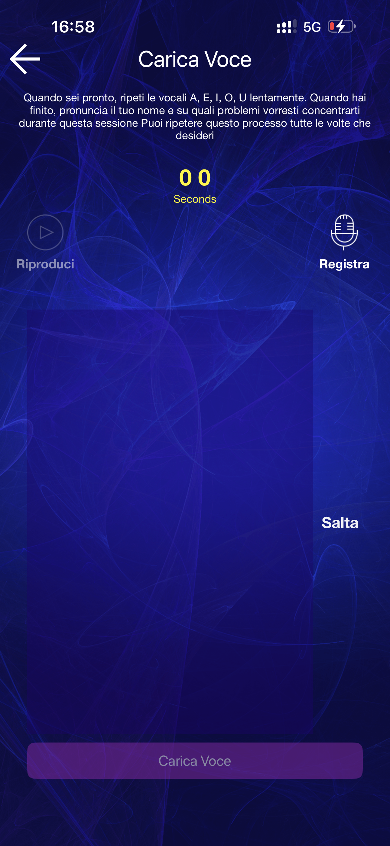 seguire le istruzioni registrando la voce. Pronunciare le vocali A, E, I, O, U, lentamente, seguite dal proprio nome e dall’obiettivo che si vuole raggiungere;